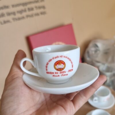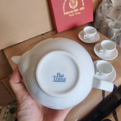 Bộ ấm chén in logo quà tặng được sản xuất qua quy trình nung nóng ở nhiệt độ cao, đảm bảo độ cứng và bền cho sản phẩm.