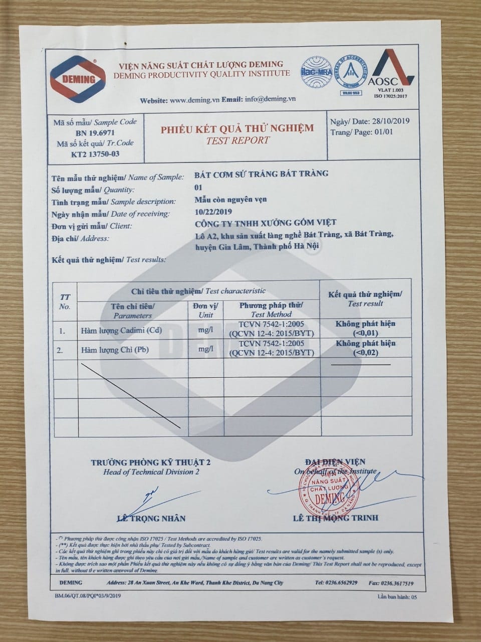 Chúng tôi luôn đảm bảo mỗi sản phẩm từ Xưởng Gốm Bát Tràng đều được kiểm định nghiêm ngặt trước khi đến tay khách hàng, cam kết mang đến sự hài lòng tuyệt đối.