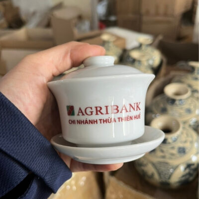 Logo AgriBank chi nhánh Huế được in rõ nét trên bề mặt tách trà, tạo điểm nhấn thương hiệu và tăng cường nhận diện.Công nghệ in hiện đại đảm bảo logo không bị phai màu theo thời gian.